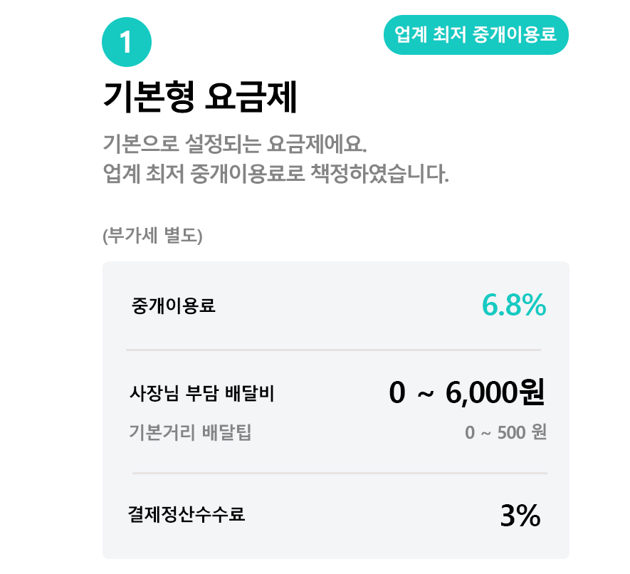 - 중개이용료와 배달비를 포함한 요금제로,