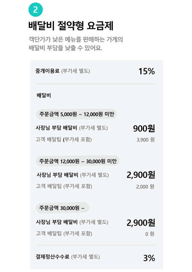 ◼ 배달비절약형 요금제는, 고객에게 부과하는 ‘배달팁'을 배달의민족에서 정하고 있어요.