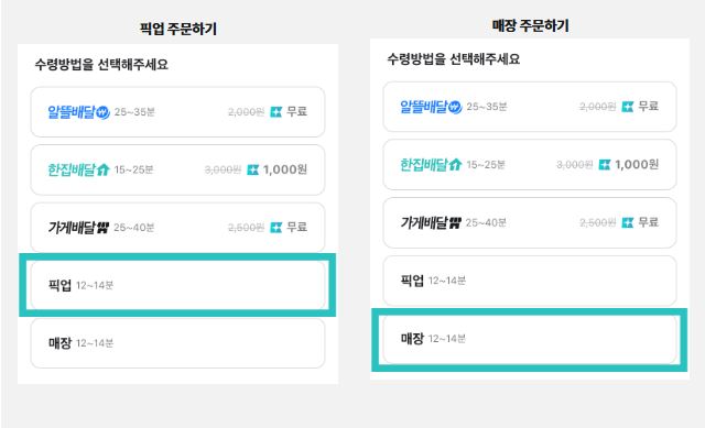 ▪️ 픽업: 주문 예상 시간에 맞춰 고객이 가게를 직접 방문하여 조리(포장)가 완료된 음식 수령