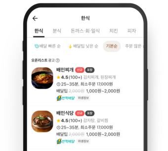 1인분과 같은 테마광고 영역에 가게를 노출 할 수 있습니다.